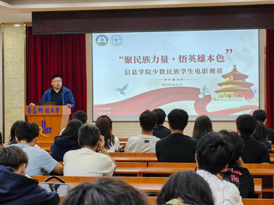 9月24日,太阳成集团tyc7111cc在402报告厅组织开展“聚民族力量・悟英雄本色”少数民族学生观影活动。辅导员郑开齐以及来自各年级少数民族学生代表齐聚一堂,共赴光影之约。